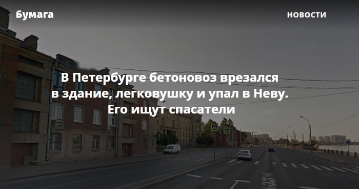 В ночь на 23 декабря в Невском районе Петербурга водитель бетоновоза врезался в здание, столкнулся с легковым автомобилем и после этого съехал в Неву. Об этом сообщает пресс-служба ГИБДД.