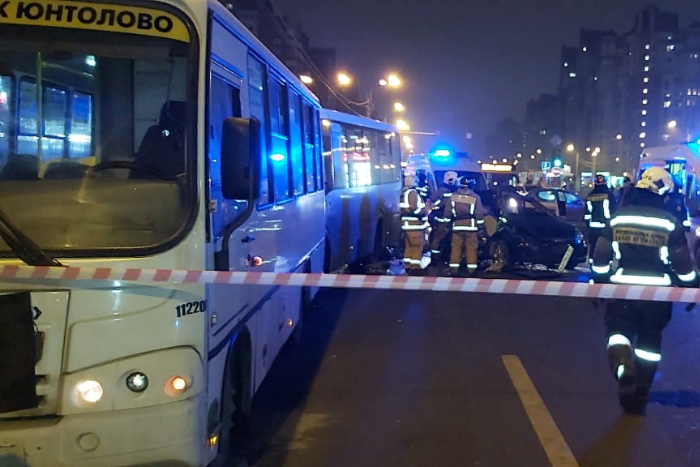 У «Беговой» столкнулись два автомобиля и две маршрутки. Один человек погиб