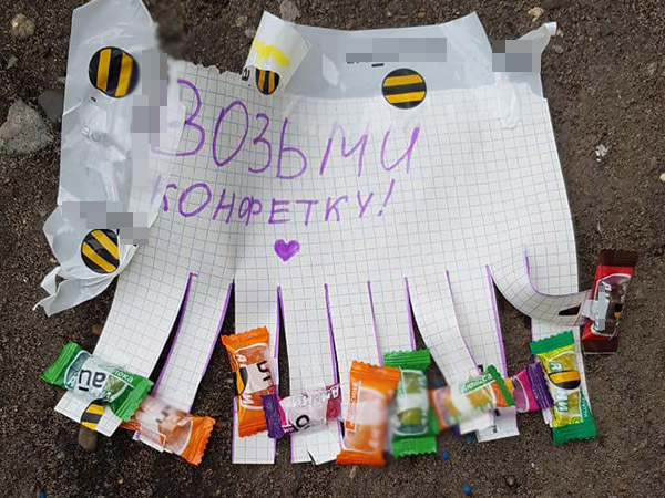 В соцсетях также распространяют фотографии листовки с надписью «Возьми конфетку» и прикрепленными к ней сладостями, с помощью которой школьникам якобы предлагают запрещенные вещества под видом обычных конфет и жвачек. Этот снимок появлялся не только в петербургских пабликах, но и в группах других регионов России. Откуда он взялся, точно не известно.