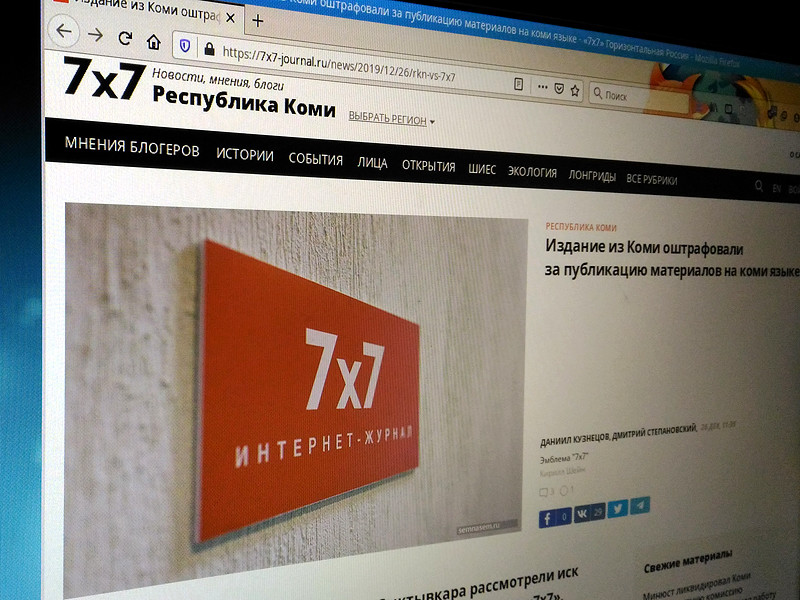 Издание из Коми "7x7" оштрафовали за публикации на языке коми