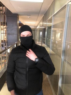 Адвоката Григория Червонного пропустили на обыск после того, как он надел балаклаву. Но когда он показал удостоверение, его выгнали.