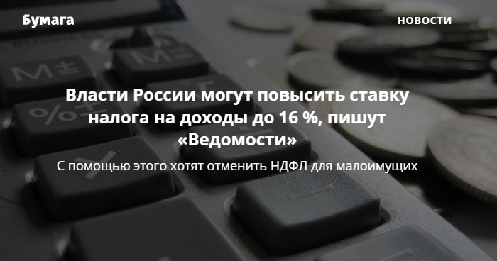 В России могут повысить ставку налога на доходы до 16 %