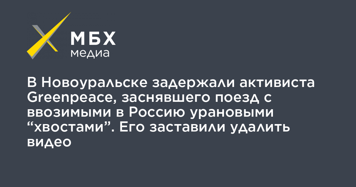 В закрытом городе Новоуральск Свердловской области сотрудники полиции задержали местного активиста Виктора Казакова, который снял видео поезда, ввозившего в Россию из Германии побочные продукты обогащения урана – так называемые урановые «хвосты». Об этом «МБХ медиа» рассказал пресс-секретарь Greenpeace Константин Фомин.