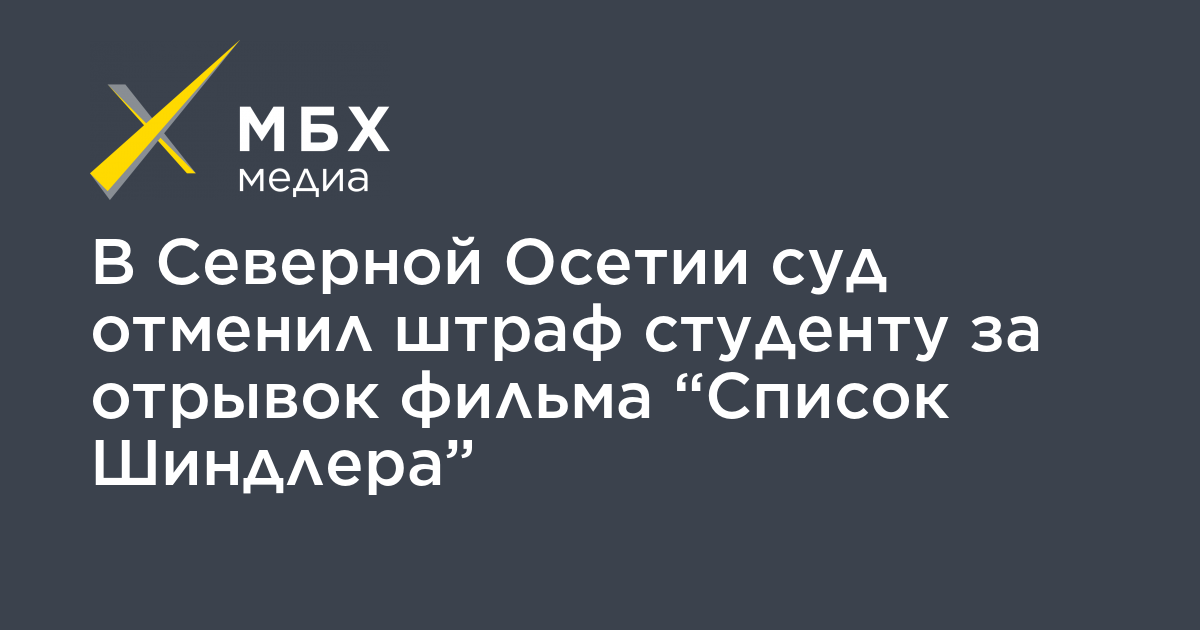 Верховный Суд Северной Осетии отменил штраф в тысячу рублей студенту юрфака Илье Гусоеву, которого обвинили в демонстрации нацистской символики (статья 20.3 КоАП) из-за публикации фильма Стивена Спилберга «Список Шиндлера». Об этом сообщил «Юг. МБХ медиа» адвокат Алан Тедеев.