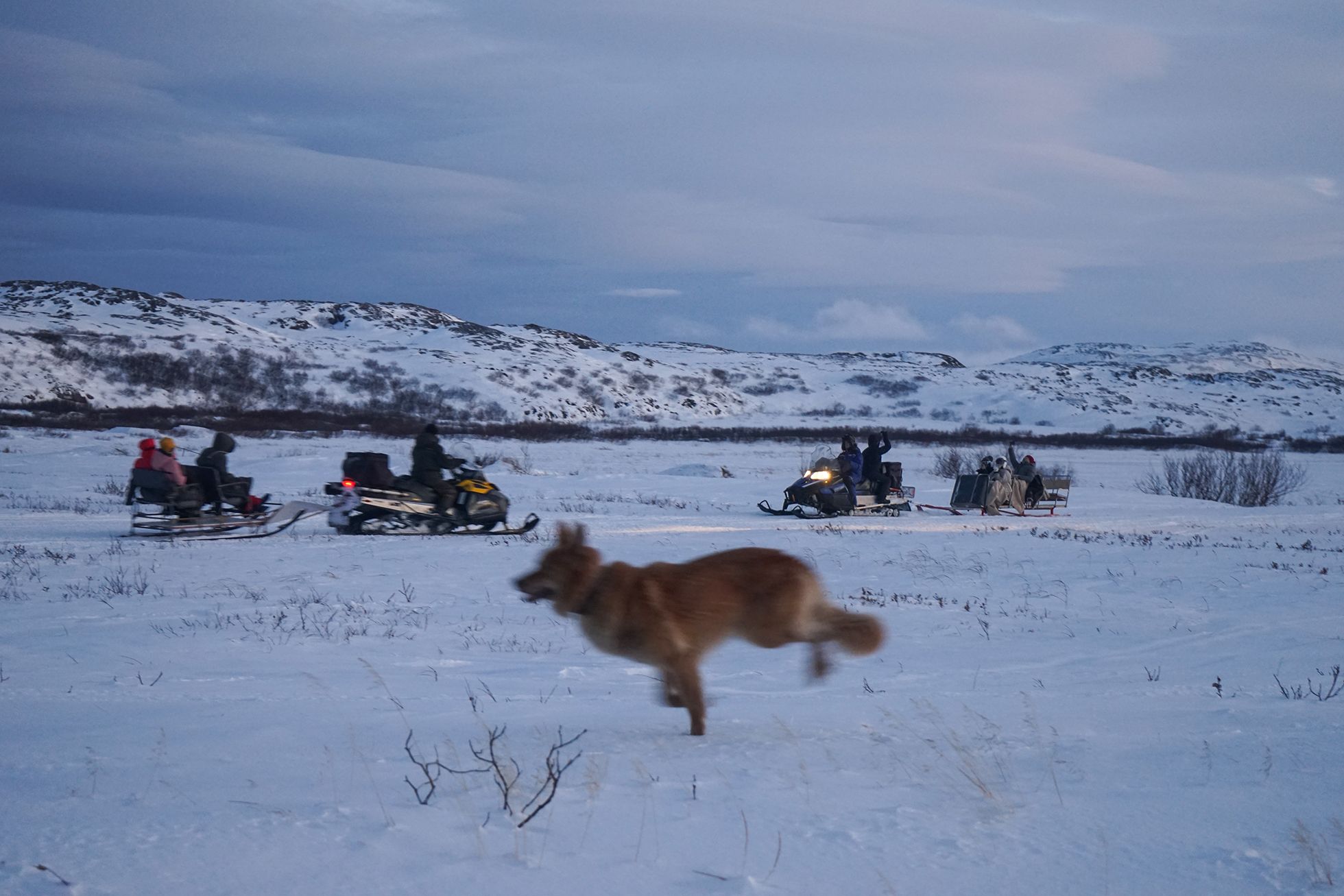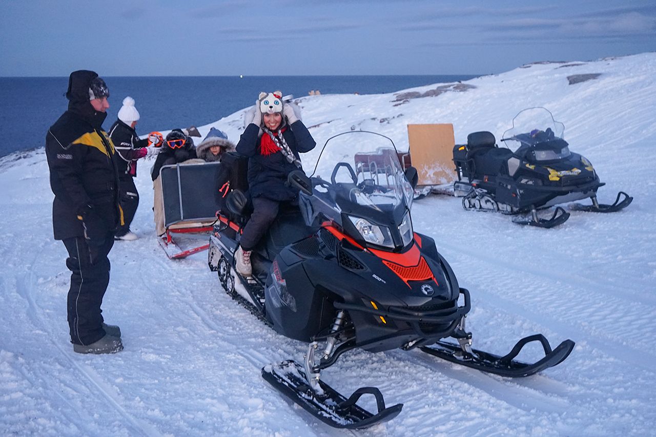 Охота за сиянием — ночное занятие, днем туристов развлекают другими доступными способами. Обычно азиатских гостей возят в саамскую деревню в селе Ловозеро — там можно покататься на оленях. А еще в питомник хаски и в город Кировск, где расположены горы Хибины. Териберка тоже в числе популярных дневных направлений — причем гиды утверждают, что фильм «Левиафан», который принес известность этому поселку, китайцы не знают. Их больше интересует Баренцево море. Автобусы обычно приезжают к окраине села (той новой части Териберки, которая называется Лодейное), там их уже ждут местные жители, которые везут туристов на снегоходах к побережью и водопаду (это тоже местная достопримечательность). Туристы едут в санях, прицепленных к машине, в них помещается до шести человек.