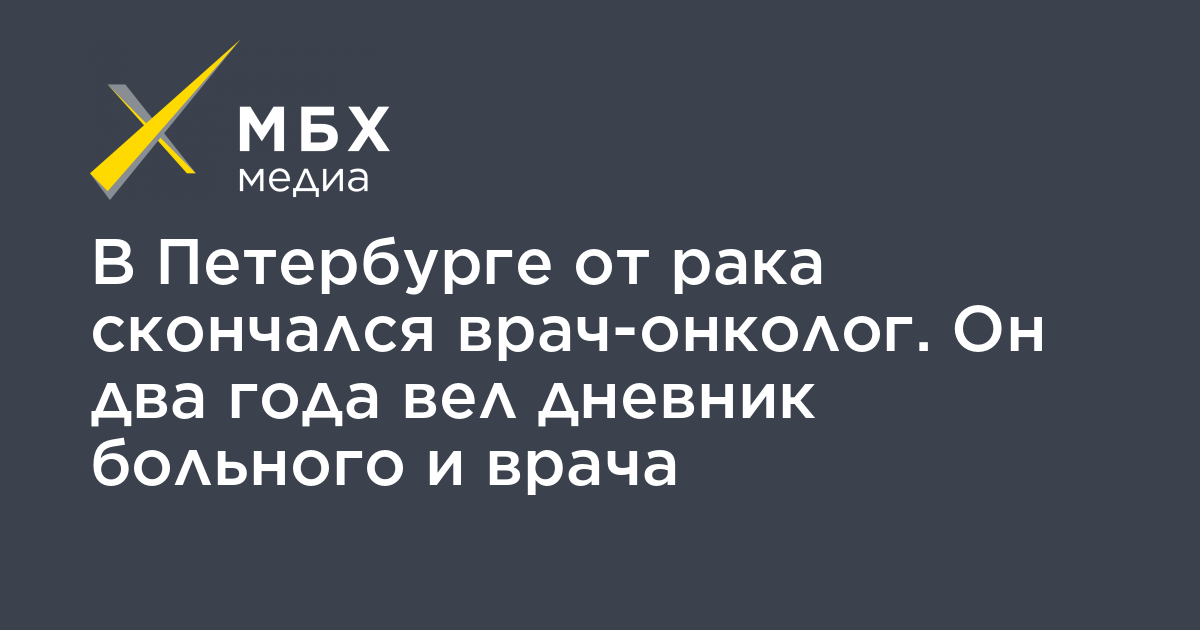 В Петербурге от рака скончался врач-онколог. Он два года вел дневник больного и врача
