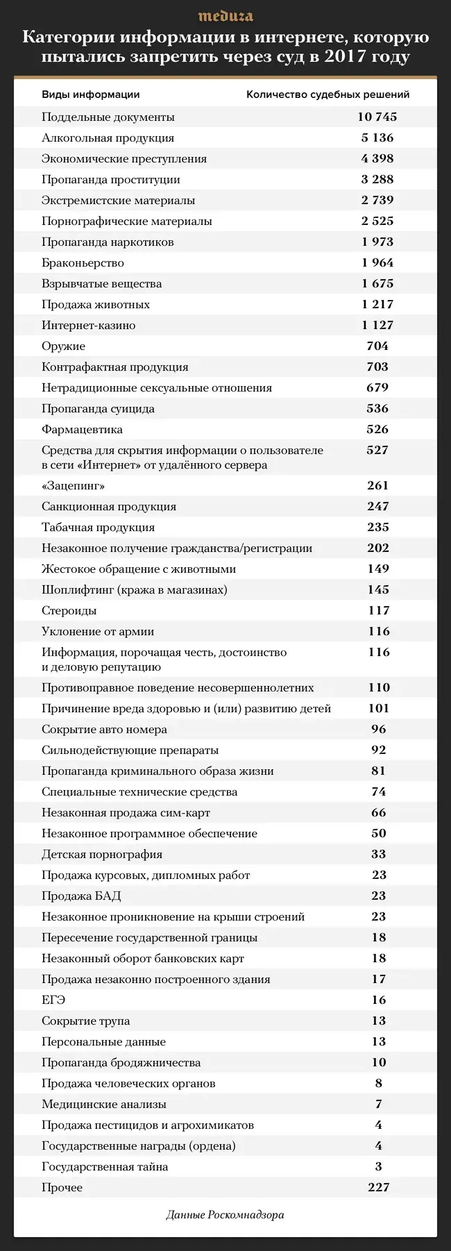 - Суд может запретить и потребовать блокировки любой информации, «за распространение которой предусмотрена уголовная или административная ответственность».