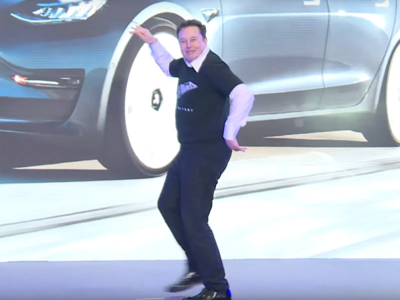 Глава компании Tesla Илон Маск продемонстрировал свои танцевальные навыки на церемонии открытия завода Tesla в пригороде Шанхая. Видео с небольшим танцем Маска на сцене было опубликовано на YouTube-канале агентства Bloomberg.