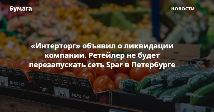 Как рассказал Абдуллаев, компанию «СПАР СПб», зарегистрированную в начале декабря, также ликвидируют. Ранее появилась информация, что с ее помощью владелец «Интерторга» намеревался перезапустить бизнес после Нового года. Тогда некоторые арендодатели и поставщики получили предложение перезаключить договоры с новым юрлицом.