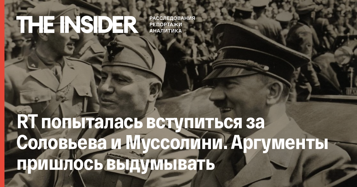 RT попыталась вступиться за Соловьева и Муссолини. Аргументы пришлось выдумывать