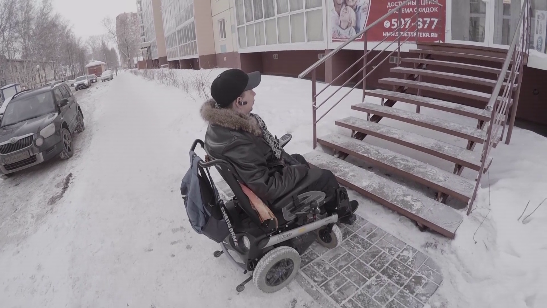 "Помоги мне съехать!" – обращается к прохожему Андрей Виноградов. Зимой просить придержать коляску на бордюре или при въезде на пандус приходится чаще, чем летом. Она застревает в снегу на тротуаре, буксует на скользких пандусах, а при съезде с бордюра может упасть. Поэтому зимой Андрей выходит на улицу не чаще раза в неделю. Летом проблем меньше, но ненамного, говорит он: