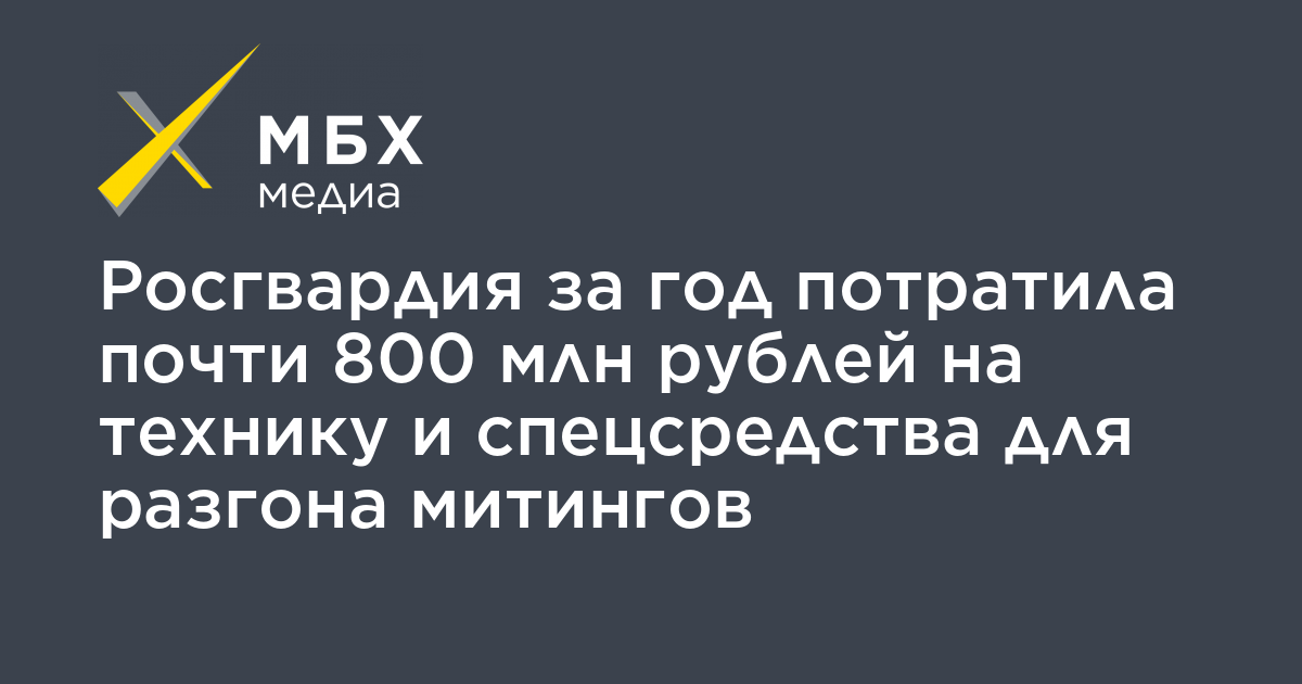 Росгвардия в 2019 году потратила почти 800 млн рублей на технику и спецсредства, которые используются в том числе для разгона акций протеста, подсчитало «МБХ медиа» на основе данных госзакупок.