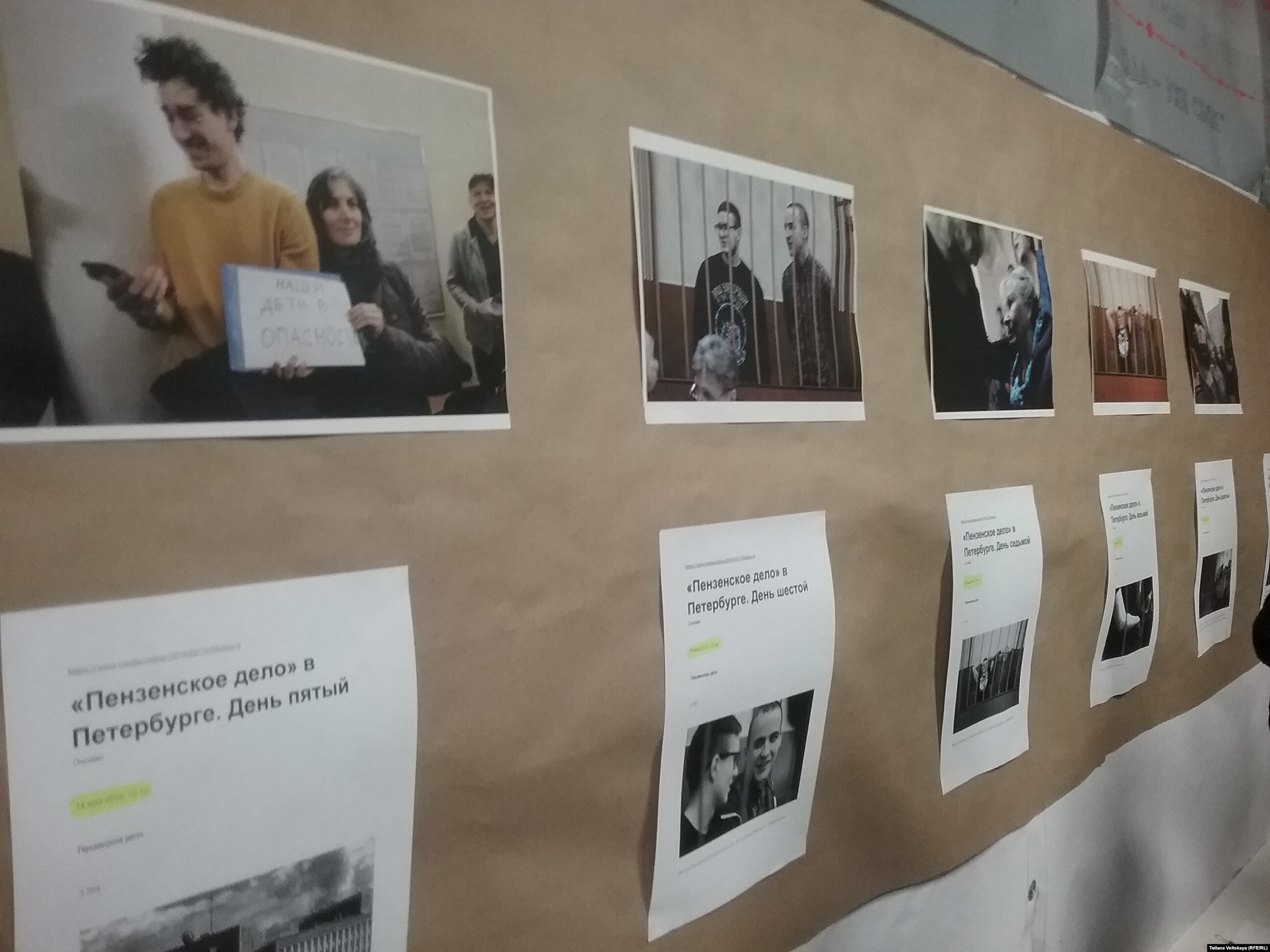 В петербургском офисе партии "Яблоко" открылась выставка в поддержку участников дела "Сети". Она представляет собой подробный хронологический рассказ о возникновении и развитии уголовного дела, снабженный фотографиями, письмами и рисунками 11 обвиняемых, в основном, молодых анархистов и антифашистов из Пензы и Петербурга.