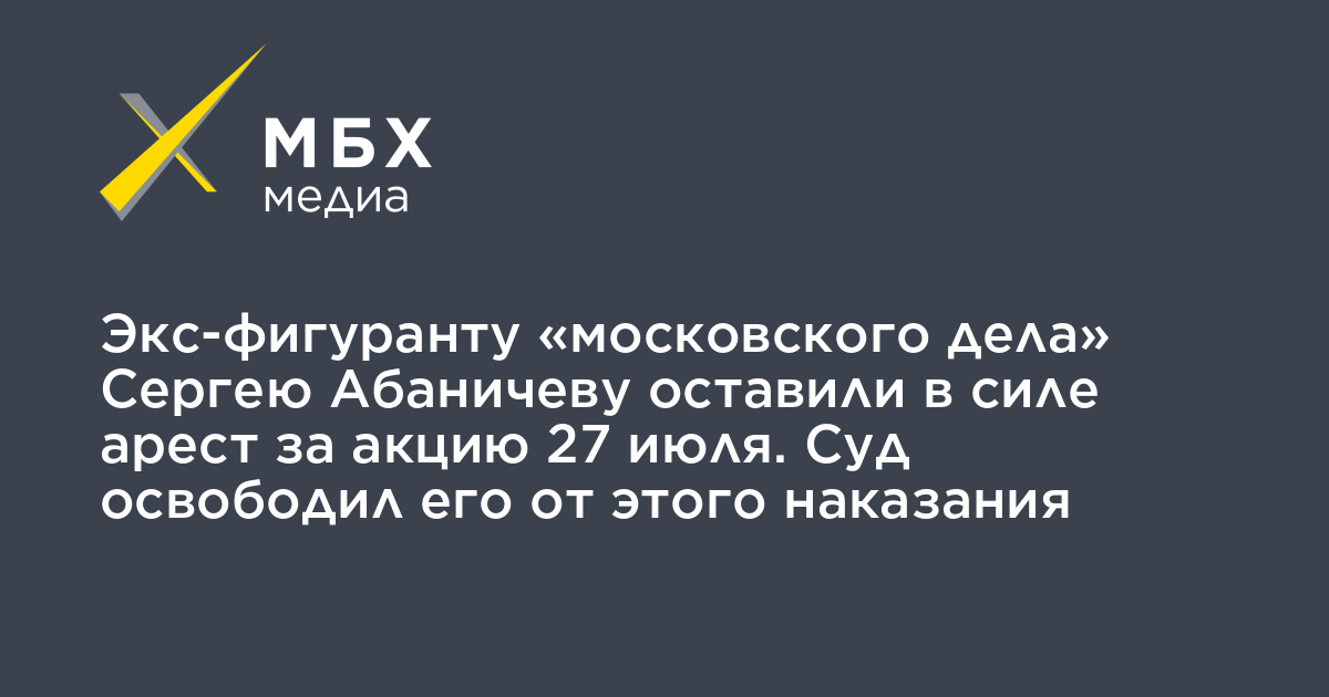 Экс-фигуранту «московского дела» Сергею Абаничеву оставили в силе арест за акцию 27 июля. Суд освободил его от этого наказания – МБХ медиа