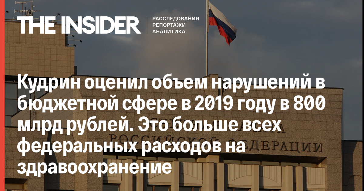Кудрин оценил объем нарушений в бюджетной сфере в 2019 году в 800 млрд рублей. Это больше всех федеральных расходов на здравоохранение
