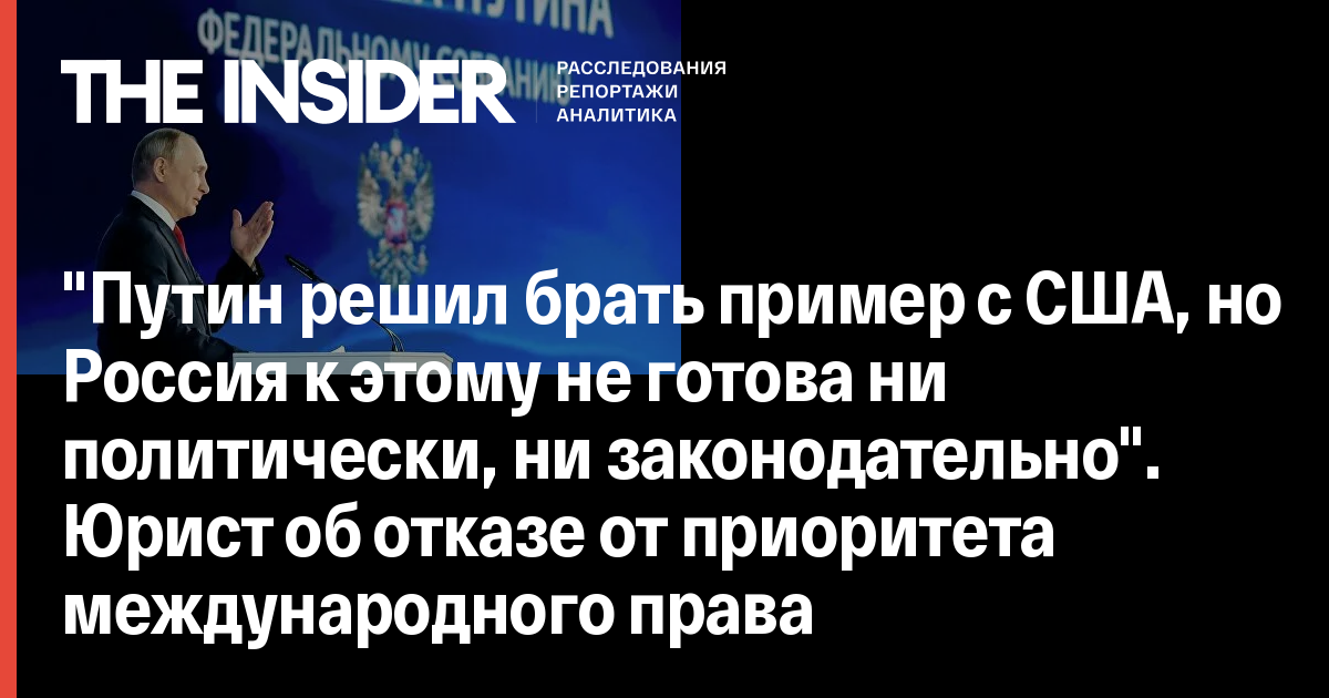 "Путин решил брать пример с США, но Россия к этому не готова ни политически, ни законодательно". Юрист об отказе от приоритета международного права