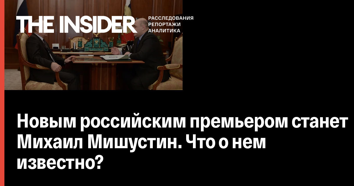 Владимир Путин внес на рассмотрение в Госдуму кандидатуру главы Федеральной налоговой службы России Михаила Мишустина на должность премьер-министра после встречи с ним. The Insider публикует биографию политика.