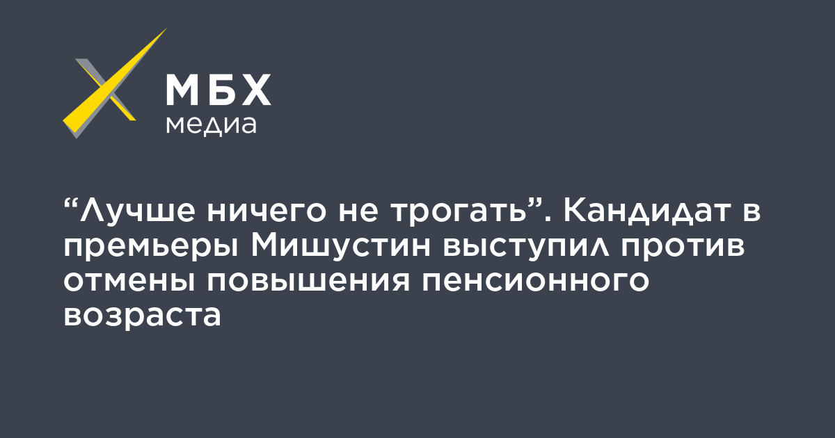 «По пенсионной реформе сейчас лучше ничего не трогать мне кажется. Разобраться нужно по тому, что происходит с доходами и дожитием», — сказал на встрече с КПРФ Мишустин, которого процитировал Корниенко.
