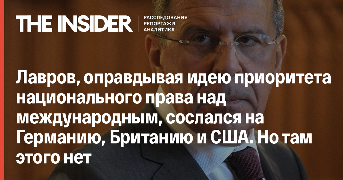 Лавров, оправдывая идею приоритета национального права над международным, сослался на Германию, Британию и США. Но там этого нет