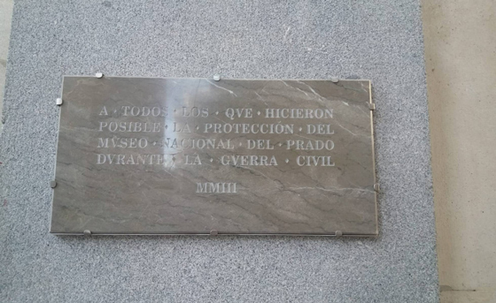 «Всем, кто сделал возможным сохранение Национального музея Прадо в годы Гражданской войны». Мемориальная доска, установленная на фасаде музея Прадо в 2003 году «Если мы все сделаем хорошо, никто не будет знать наших имен, а вот если плохо, то их не забудут никогда». Эта грустная шутка из мемуаров Тимотео Переса Рубио оказалась пророческой. Они предпочли забвение. Да и режим Франко сделал все возможное, чтобы стереть из памяти Испании их имена и саму историю эвакуации. Только когда в 2003 году в Прадо открылась выставка «Спасенные сокровища», на фасаде музея установили мемориальную доску в память обо всех, «кто сделал возможным сохранение Национального музея Прадо в годы Гражданской войны».