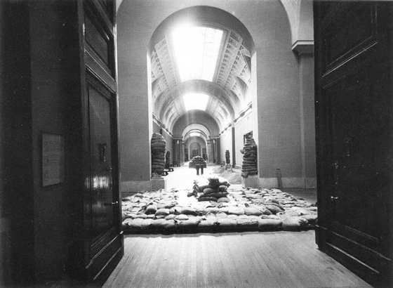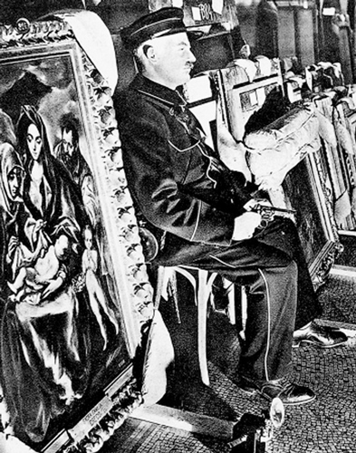 Через несколько дней после того, как «Менины» вернулись в целости и сохранности из Женевы, «Ночной дозор» Рембрандта, накрученный на цилиндр, вынесли из Рейксмюсеума через садовую дверь: коллекцию амстердамского музея переместили в бункеры, построенные на побережье. Лувр также вскоре начал эвакуацию. Если ранее международные нормы предписывали перемещение экспонатов в подвальные хранилища in situ, испанский опыт подтвердил необходимость эвакуации. Да, все обошлось, Прадо серьезно не пострадал, но опасность была реальна. А если бы экстремистские группировки решили использовать коллекцию для шантажа? Или музей сгорел бы при обстреле?