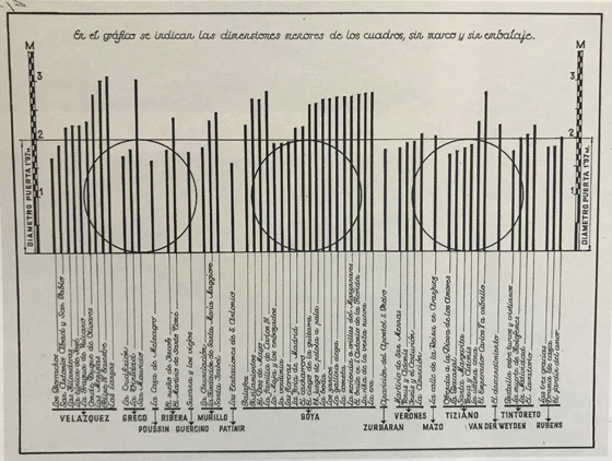 © Фонд Ваамонде Оркада. Архив IPCE Размеры сейфовой двери хранилища Банка Испании и картин без рам. Рисунок архитектора Хосе Лино Ваамонде, подтверждающий, что большинство картин не пройдет в двери хранилища Первый приказ об эвакуации Прадо заместитель директора — а на самом деле реальный руководитель музея на протяжении многих десятилетий — Санчес Кантон получил уже 5 ноября. Он решительно выступил против перемещения коллекции в Валенсию, тем более такого поспешного. Еще весной 1935 года Попечительский совет музея, предчувствуя нарастание напряженности в стране, подготовил список главных шедевров Прадо и постановил, что в экстренном случае они могут быть укрыты в хранилищах Банка Испании, расположенного по соседству. Но эту возможность отвергли — сохранился рисунок архитектора Хосе Лино Ваамонде, одного из руководителей Комитета по охране художественного достояния, наглядно демонстрирующий, что большинство картин коллекции даже со снятыми рамами не проходило в двери хранилища: холсты, выполненные для королевских собраний, отличались имперским масштабом.