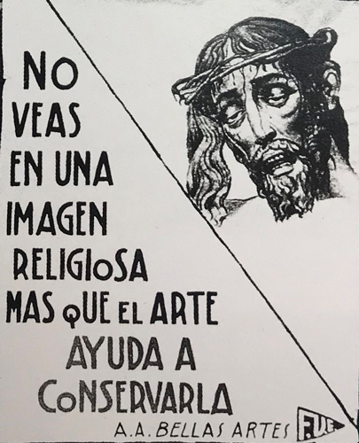 © Фонд Ваамонде Оркада. Архив IPCE «Искусство и культура взывают к твоей помощи, гражданин!», «Научись видеть в религиозном образе искусство. Помоги сохранить его!» — плакаты из серии, выполненной студентами художественных училищ для уличной пропаганды Этап второй: Мадрид — Валенсия