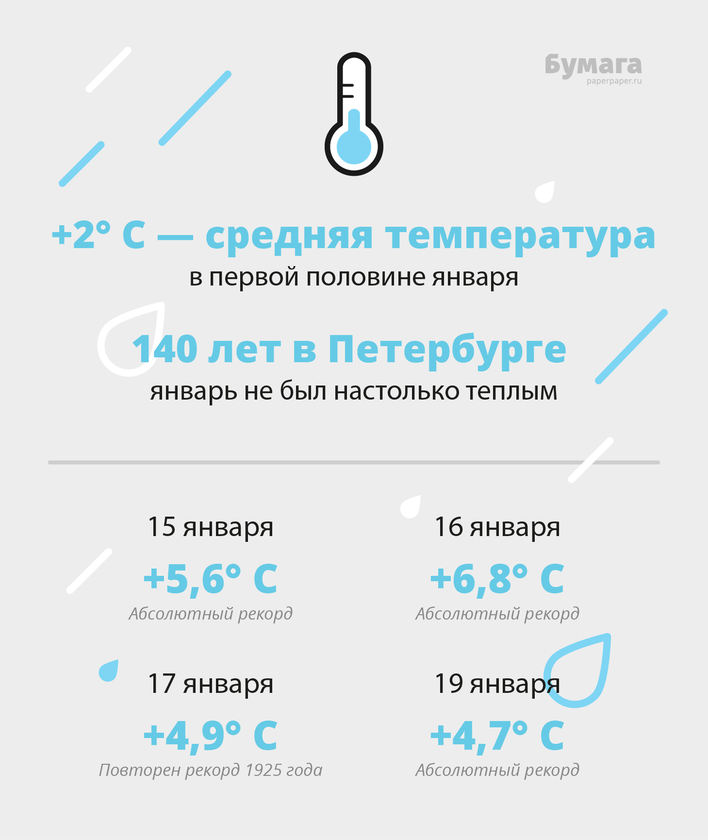 Январь в Петербурге бьет температурные рекорды: таким теплым он не был никогда. Главные цифры — в одной картинке