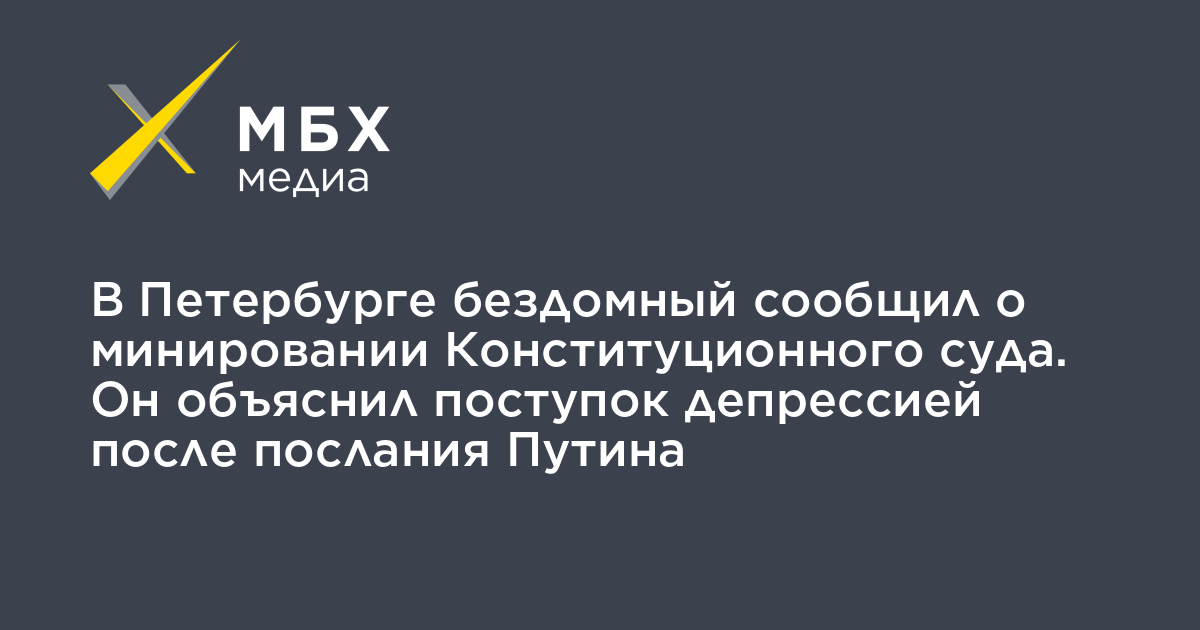В Петербурге бездомный сообщил о минировании Конституционного суда. Он объяснил поступок депрессией после послания Путина