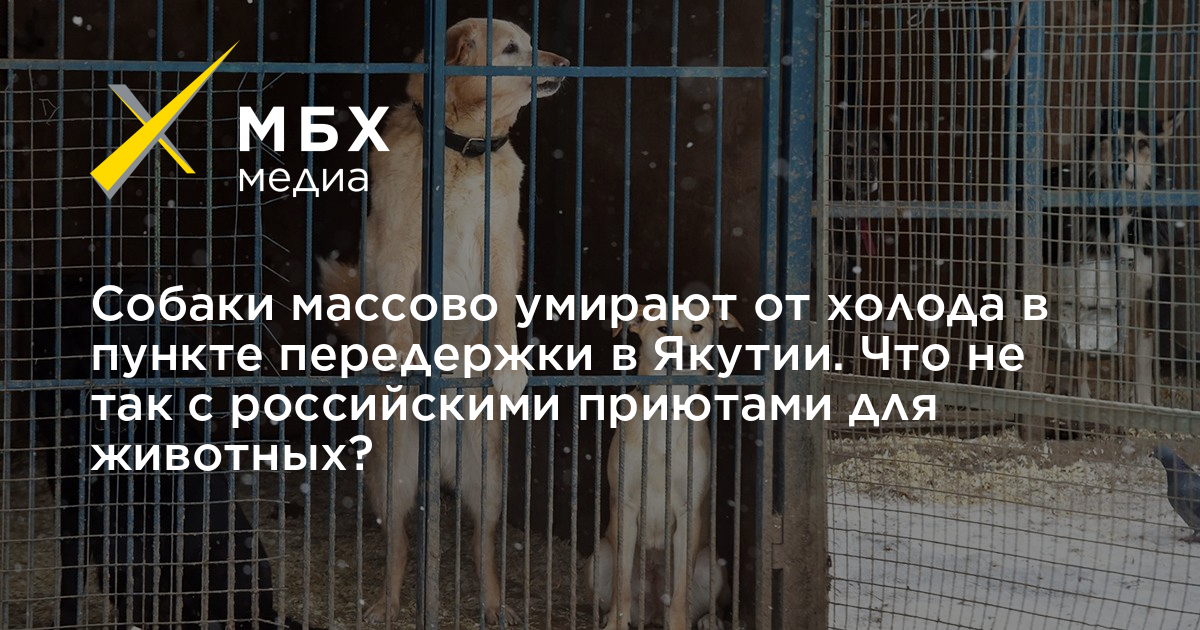 В Якутии на 50-градусном морозе массово умирают собаки в холодных вольерах. В единственном местном ППЖ (пункте передержки животных или просто «передержке») нет утепленных будок, работники не убираются в вольерах, собаки вынуждены находиться на морозе без воды, с замерзшей едой и на коротких цепях. Так животные и умирают от обезвоживания и холода среди собственных фекалий и мочи (в распоряжении «МБХ медиа» есть шокирующие видео с пункта, но мы не будем выкладывать их в общий доступ).