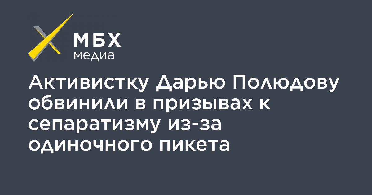 На активистку Дарью Полюдову завели уголовное дело о призывах к сепаратизму (часть 1 статьи 280.1 УК) из-за плаката с надписью: «Курилы, хватит кормить Москву. Да здравствует Дальневосточная республика», с которым она стояла во время одиночного пикета. Об этом сообщил «МБХ медиа» адвокат правозащитной группы «Агора» Леонид Соловьев.