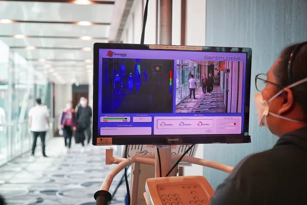 Проверка температуры тела тепловизором в аэропорту Чанги, Сингапур. Фото: EPA