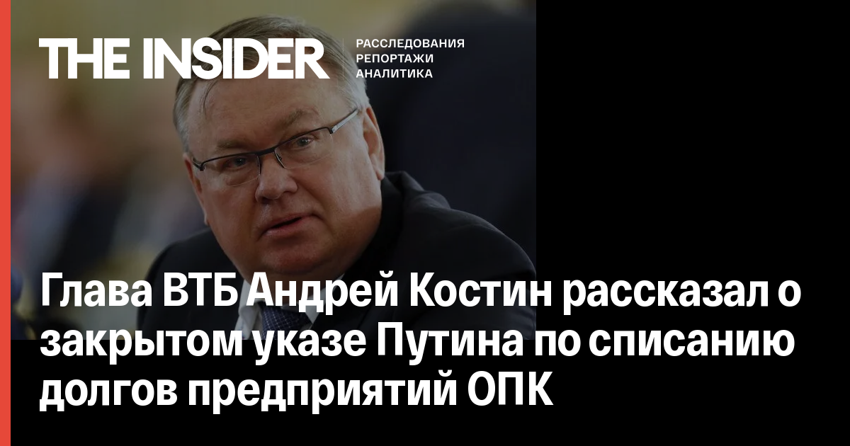 Глава ВТБ Андрей Костин рассказал о закрытом указе Путина по списанию долгов предприятий ОПК
