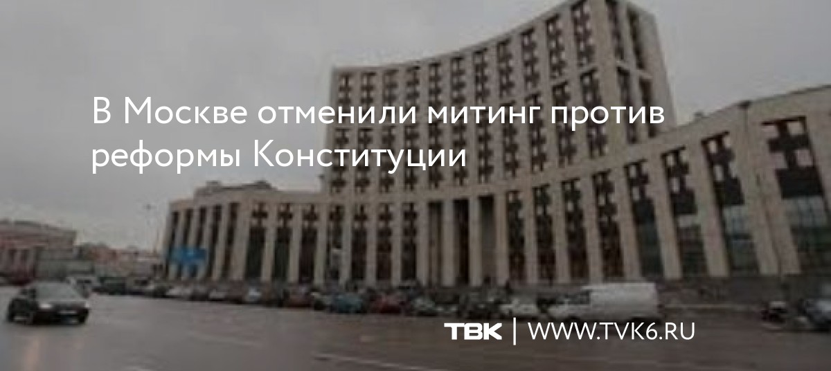 Ранее согласованный митинг против внесения поправок в Конституцию РФ в Москве отменили. Заявку отозвали сами организаторы, передает издание «МБХ Медиа» со ссылкой на одного из заявителей, члена Либертарианской партии Игоря Ефремова.