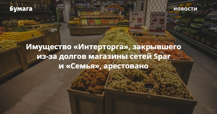 Арбитражный суд Петербурга и Ленобласти наложил арест на имущество компании «Интерторг», закрывшей из-за долгов магазины сетей Spar и «Семья». Об этом пишет ТАСС.