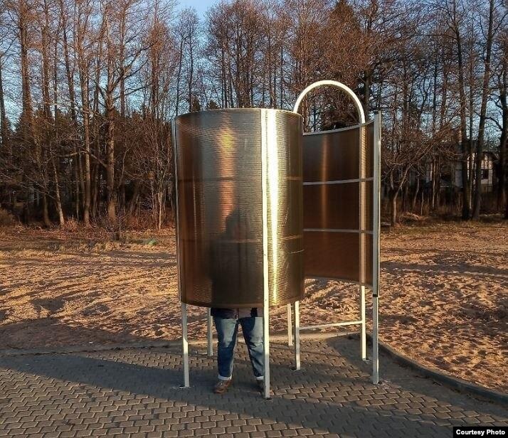 В Петербурге на пляже установили высокие и прозрачные раздевалки. Людей в них видно