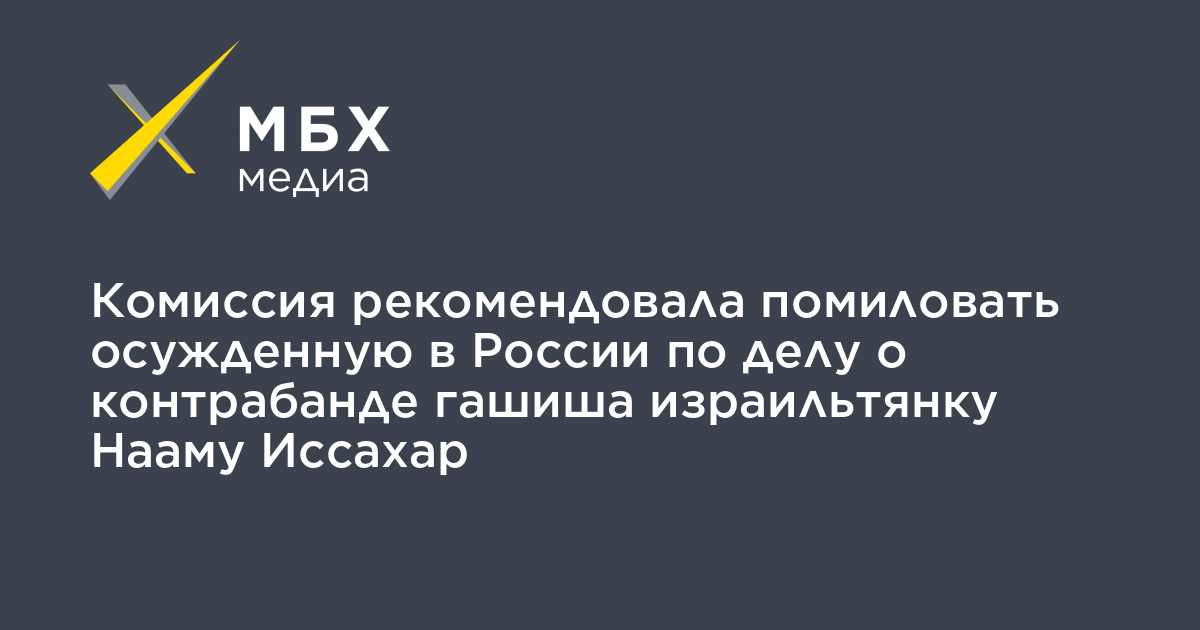 Комиссия по вопросам помилования Московской области рекомендовала удовлетворить прошение о помиловании израильтянки Наамы Иссахар, осужденной в России по делу о контрабанде наркотиков, сообщает «Интерфакс» со ссылкой на зампреда комиссии, уполномоченного по правам человека в Московской области Екатерину Семенову.