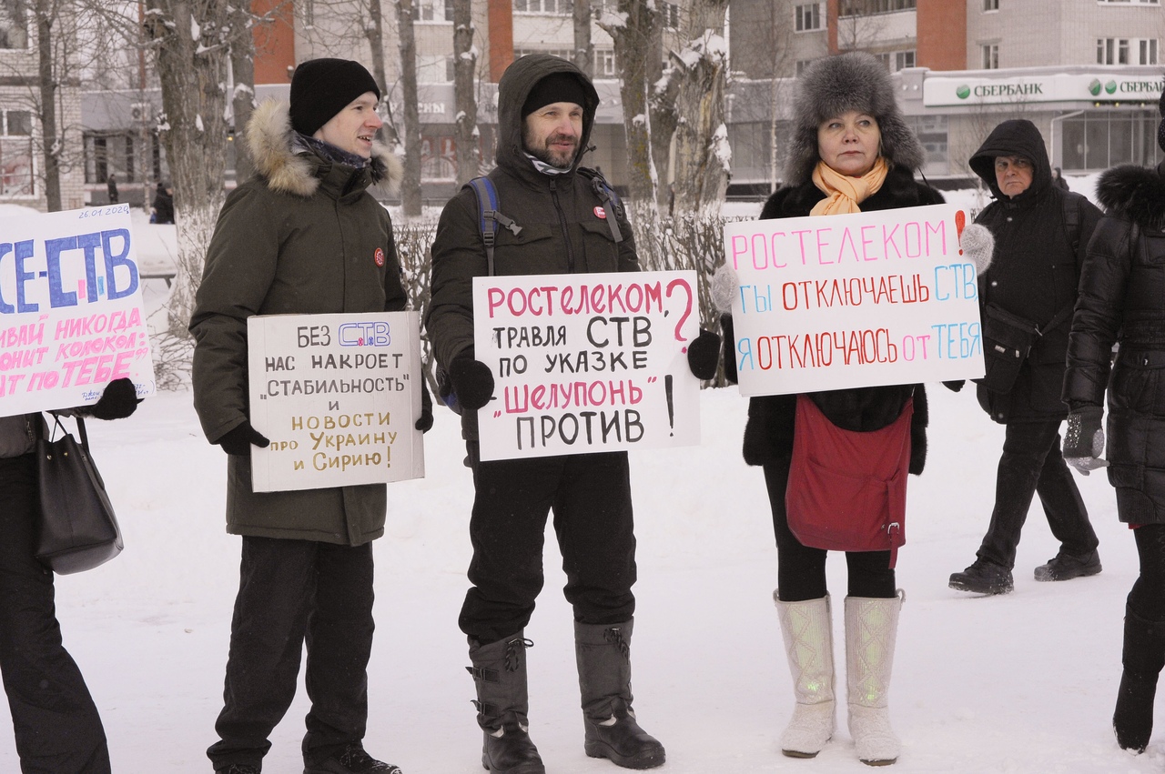 В Северодвинске около 400 человек вышли на пикет в поддержку телеканала СТВ, чье вещание с 1 февраля может пропасть из сетки "Ростелекома". Активисты полагают, что это связано с репортажами журналистов о протестах против мусорного полигона на Шиесе, сообщается в паблике "Чистый Север 29".