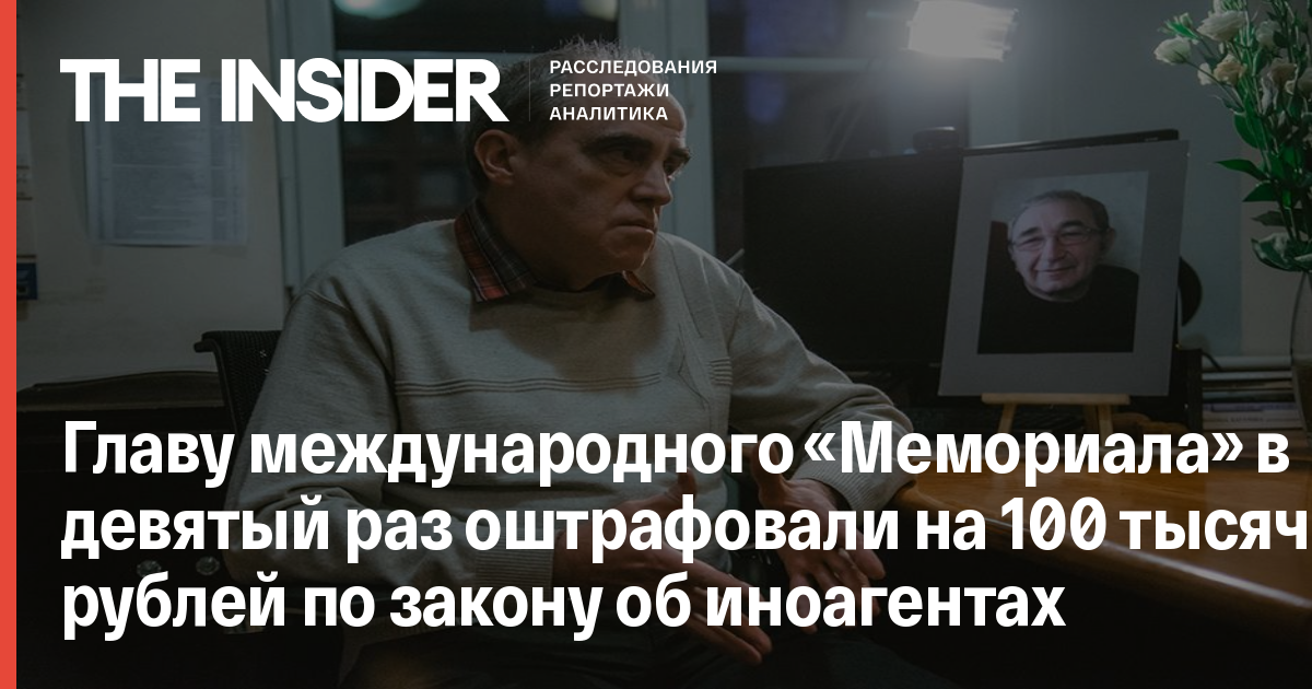 Главу международного «Мемориала» в девятый раз оштрафовали на 100 тысяч рублей по закону об иноагентах
