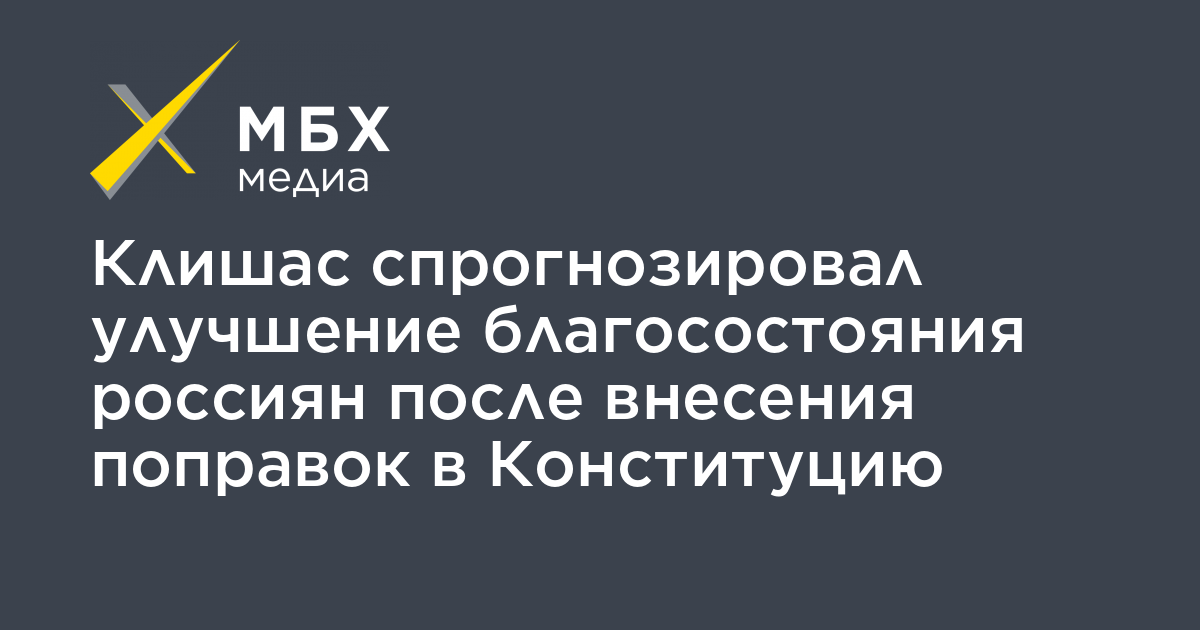 Сенатор Андрей Клишас заявил, что внесение поправок в Конституцию повысит благосостояние россиян, об этом сообщают РИА Новости.