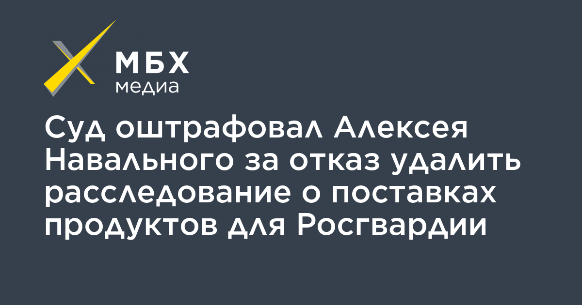 Суд оштрафовал Алексея Навального за отказ удалить расследование о поставках продуктов для Росгвардии