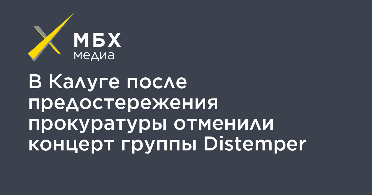 В Калуге из-за предупреждения прокуратуры отменили концерт ска-панк-группы Distemper, сообщается на станице группы во «ВКонтакте».