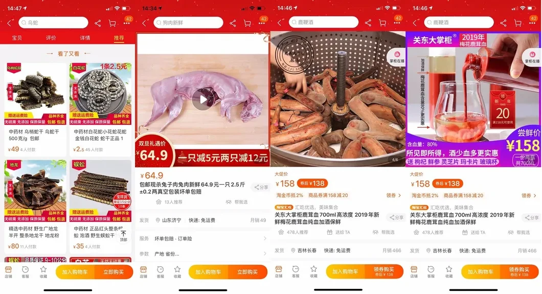 Не уверена, что можно получить диких животных [при заказе в интернете] прямо сейчас, потому что китайцы не любят провоцировать полицию. Но предложения о покупке цивет и змей есть.