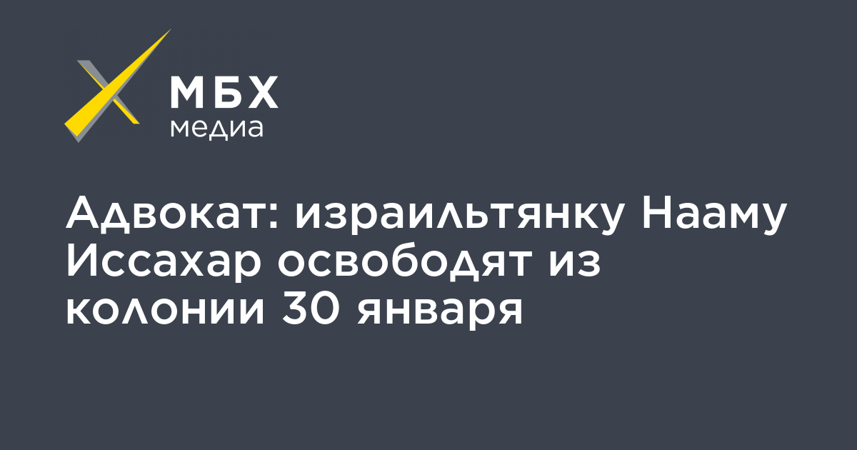 Израильтянку Нааму Иссахар, осужденную на 7,5 лет по делу о контрабанде гашиша и помилованную Путиным, выпустят из колонии 30 января. Об этом «МБХ медиа» сообщил адвокат Pen&Paper Алексей Добрынин.