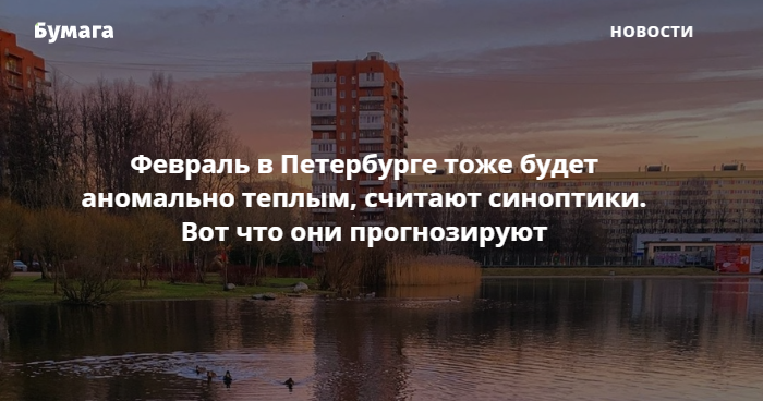 Синоптики ожидают в Петербурге аномально теплый февраль. Об этом «Бумаге» рассказал Михаил Леус из центра «Фобос».