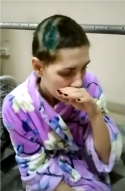 Вячеслав распространил в сети видео, которое Марина записала в больнице. На нём Татьяна обрита наголо. Её череп изуродован глубокими бороздами, перетянутыми швами. На груди видны следы от ножевых ранений.