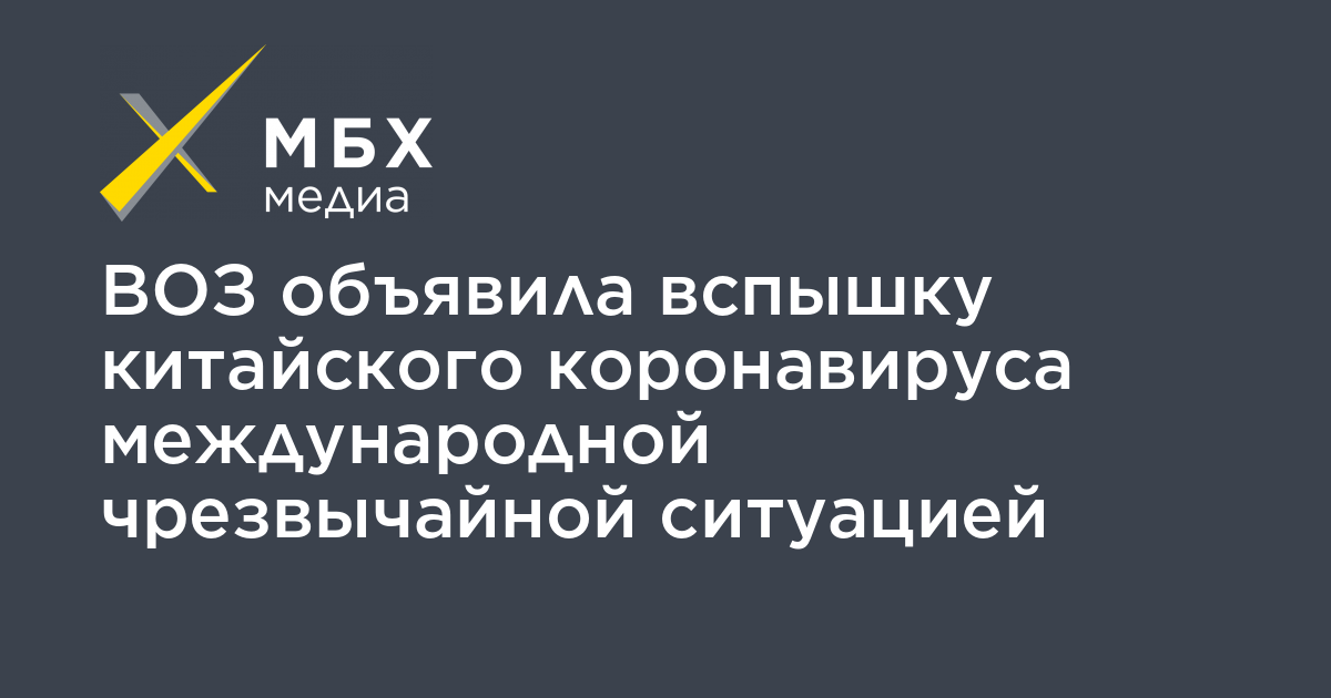 Всемирная организация здравоохранения (ВОЗ) объявила вспышку коронавируса 2019-nCoV медицинской чрезвычайной ситуацией международного значения, сообщает «Интерфакс.