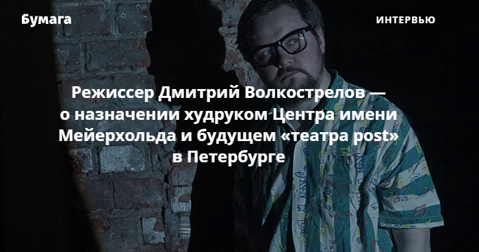 Петербургского театрального режиссера, создателя независимой группы «театр post» Дмитрия Волкострелова назначили художественным руководителем московского Центра имени Мейерхольда. На новой должности Волкострелов сменит Виктора Рыжакова, который перешел в «Современник».