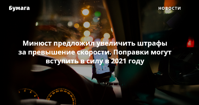 Согласно проекту, штраф за превышение скорости на 20–40 км/ч вырастет в шесть раз и будет составлять до 3 тысяч рублей (сейчас 500 рублей). За превышение на 40–60 км/ч будут штрафовать на сумму до 4 тысяч рублей (сейчас 1–1,5 тысячи). За превышение более чем на 60 км/ч предлагается штрафовать на 5 тысяч рублей или лишать водительских прав на срок от четырех до шести месяцев.