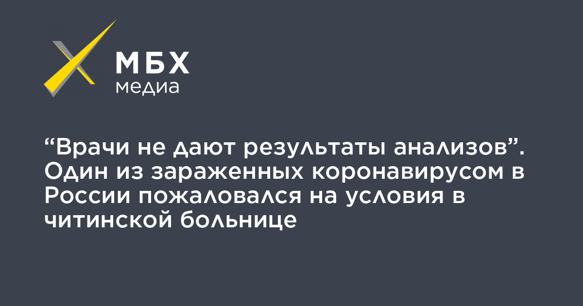 «Врачи не дают результаты анализов». Один из зараженных коронавирусом в России пожаловался на условия в читинской больнице